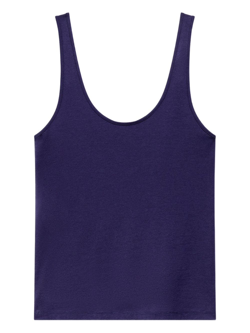 scoop-neck tank top Highlights - Indigo blue - Scoop back - Sleeveless - Straight hem Imported Composition Organic Cotton 47%, FSC Lyocell 47%, Spandex/Elastane 6%