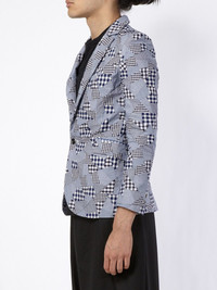 Gingham patch blazer Blue and white cotton Gingham patch blazer from Anrealage. This is a printed blazer, a patchwork compound and it is handmade. Imported Composition Cotton 100%