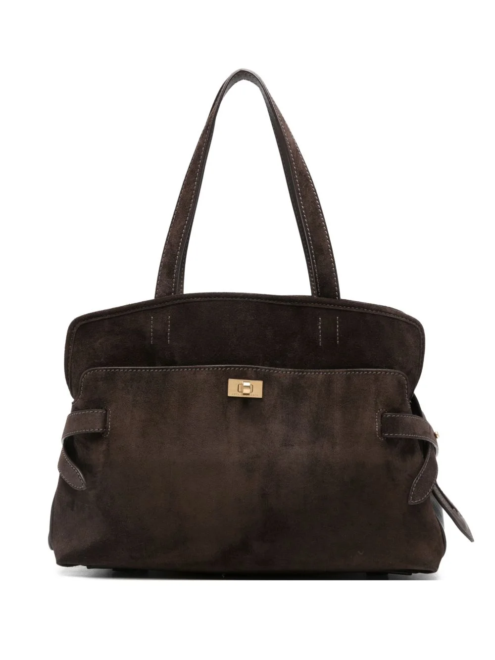 strap-detail suede tote bag Highlights - Brown - Top zip fastening - Flat top handles - Twist-lock fastening Imported Composition Lining: Microfibre 100% Outer: Suede 100%, Calf Leather 100% SIZE & FIT Model measurements Height 5 ft 9 in(1.76 m) Bust/Chest 31.49 in(80 cm) Hips 35.03 in(89 cm) Waist 24.8 in(63 cm) Measurement DEPTH 5.51 in(14 cm) HEIGHT 9.44 in(24 cm) WIDTH 12.99 in(33 cm)