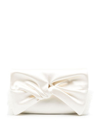 Bow fringed satin clutch