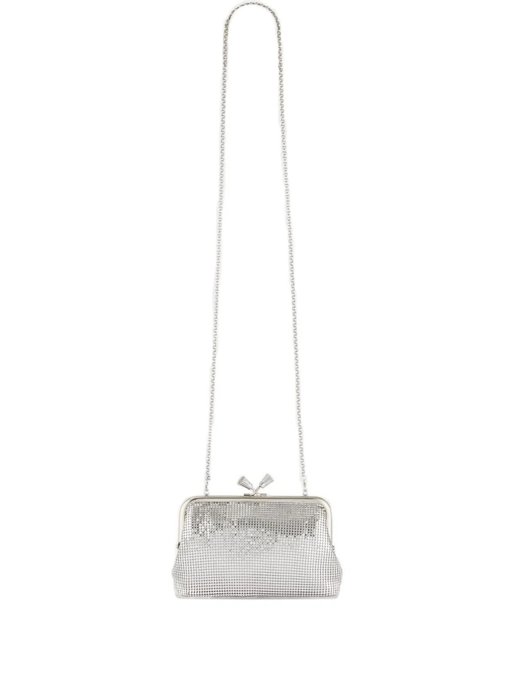 Maud clutch bag Highlights - Silver - Mesh construction - Frame clasp - Tassel detail - Chain strap - Detachable strap Imported Composition Outer: Mesh 100%, Metal 100% SIZE & FIT Measurement DEPTH 1.96 in(5 cm) HEIGHT 4.72 in(12 cm) WIDTH 8.66 in(22 cm)