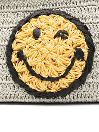 crochet smiley-logo clutch bag