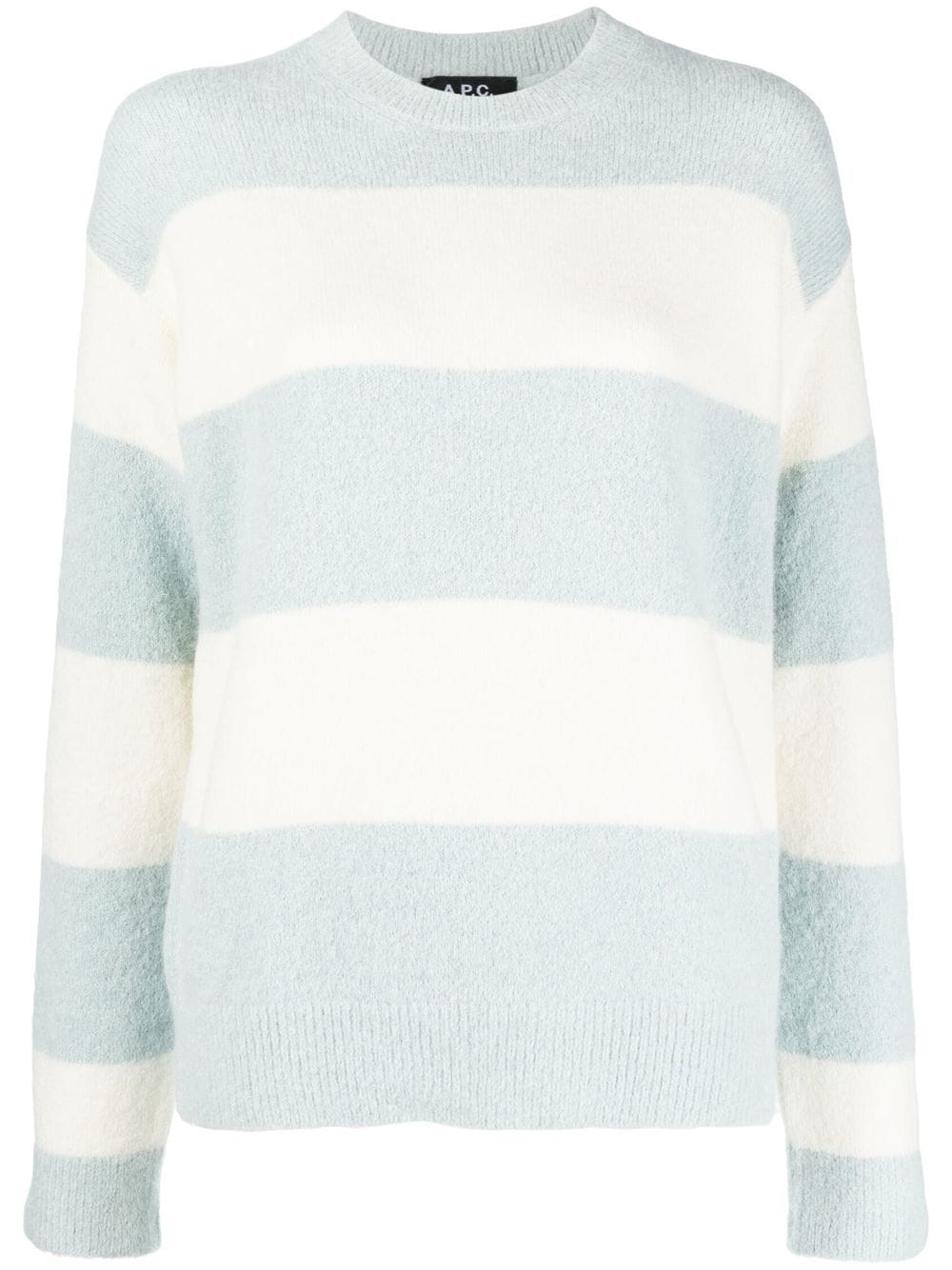 Alice horizontal-stripe knitted jumper Known for its timeless sense of design, this knitted Alice jumper from A.P.C. forms part of the label's AW22 collection. Fabricated with an alpaca wool-blend construction, the crew-neck design features classic ribbed trims and a horizontal stripe pattern. Imported Composition Alpaca Wool 72%, Polyamide 22%, Wool 4%, Elastane 2% SIZE & FIT Model measurements Height 5 ft 10 in(1.78 m) Bust/Chest 33.07 in(84 cm) Hips 35.82 in(91 cm) Waist 26.96 in(68.5 cm) FittingInformation This piece fits true to size. We recommend you get your regular size Cut for a loose fit Made with a mid-weight stretch fabric Washing instructions Hand Wash