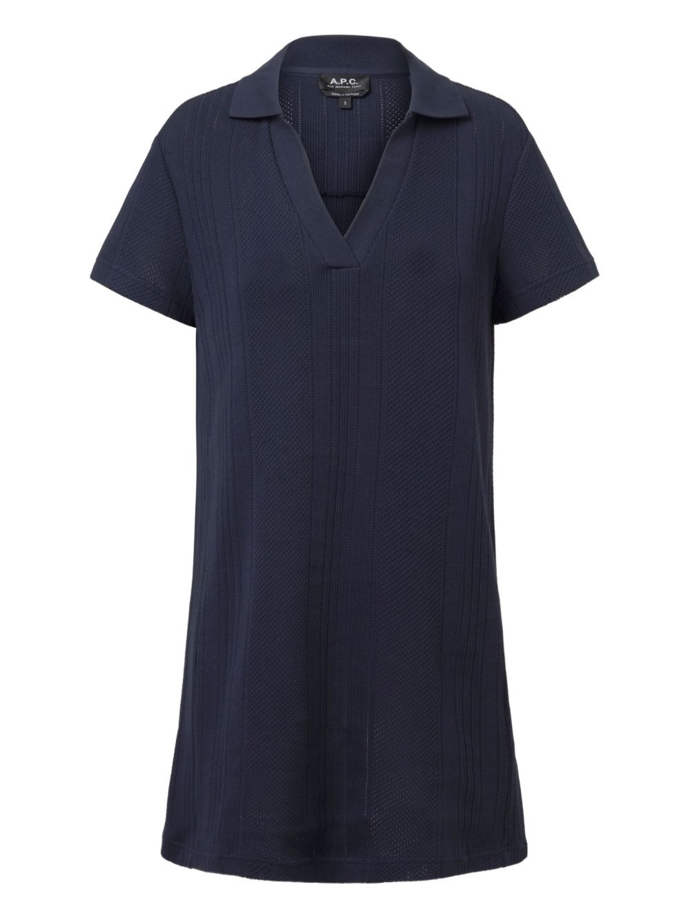Alienor textured polo mini dress Highlights - Dark navy - Polo collar - Short sleeves - Textured knit - Straight hem - V-neck Imported Composition Organic Cotton 100% Washing instructions Read Manufacturer Guidelines