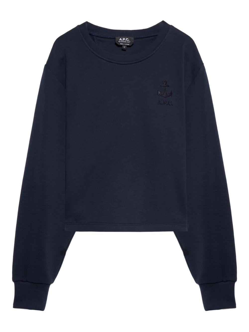 anchor-embroidered cropped sweatshirt Highlights - Navy blue - Embroidered anchor detail - Crew neck - Long sleeves - Cropped length - Cotton material Imported Composition Cotton 100% Washing instructions Read Manufacturer Guidelines