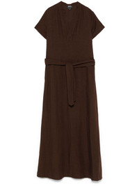 Annelie midi dress Highlights - Chocolate brown - Detachable and adjustable waist belt - Two side inset pockets - V-neck Imported Composition Outer: Viscose 65%, Linen/Flax 35% Lining: Viscose 100% SIZE & FIT Model measurements Height 5 ft 11 in(1.8 m) Bust/Chest 33.07 in(84 cm) Hips 37.4 in(95 cm) Waist 25.19 in(64 cm) FittingInformation Designed for a relaxed fit, this piece allows for comfort and movement when worn The adjustable tie waist gives a more adaptable and personalised fit Made from a midweight non-stretch fabric