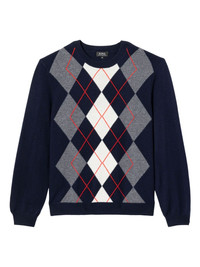 argyle-pattern sweater Highlights - Navy blue - Ribbed cuffs and hem - Crew neck - Long sleeves Imported Composition Fabric 100%