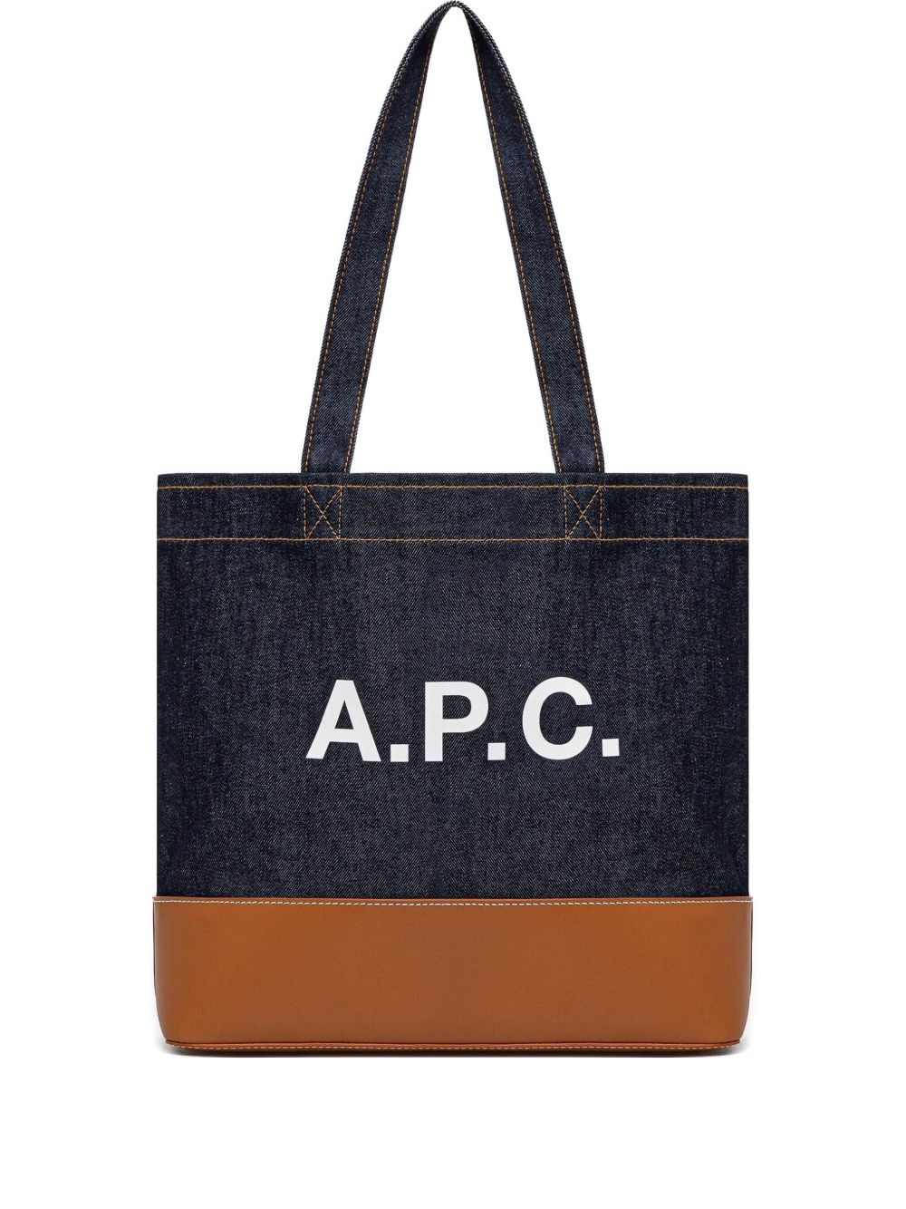 Axel leather-base denim tote bag Highlights - Dark blue - Contrast leather bottom - Logo print - Twin shoulder straps - Top-stitch detailing Imported Composition Outer: Calf Leather 100%, Cotton 100% SIZE & FIT Measurement DEPTH 4.72 in(12 cm) HEIGHT 12.2 in(31 cm) WIDTH 8.66 in(22 cm)