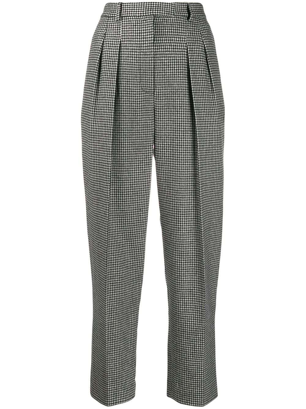 Cheryl houndstooth-print trousers Black wool Cheryl houndstooth-print trousers from A.P.C. featuring a houndstooth pattern, a cropped length, a hook and zip fly, side pockets, belt loops, a high rise and front trousers pleats. Imported Composition Wool 53%, Viscose 23%, Polyamide 19%, other fibers 4%, Spandex/Elastane 1% SIZE & FIT Model measurements Height 5 ft 10 in(1.79 m) Bust/Chest 32.28 in(82 cm) Hips 35.03 in(89 cm) Waist 23.62 in(60 cm) Measurement FRONT RISE 12.59 in(32 cm) INSIDE LEG 27.16 in(69 cm) BACK RISE 13.77 in(35 cm) Hem Width 14.56 in(37 cm) HIPS 34.64 in(88 cm) WAIST 31.49 in(80 cm) FittingInformation This piece fits true to size. We recommend you get your regular size Designed to be loose over the leg with a fitted waist and hem Made with a mid-weight non-stretch fabric