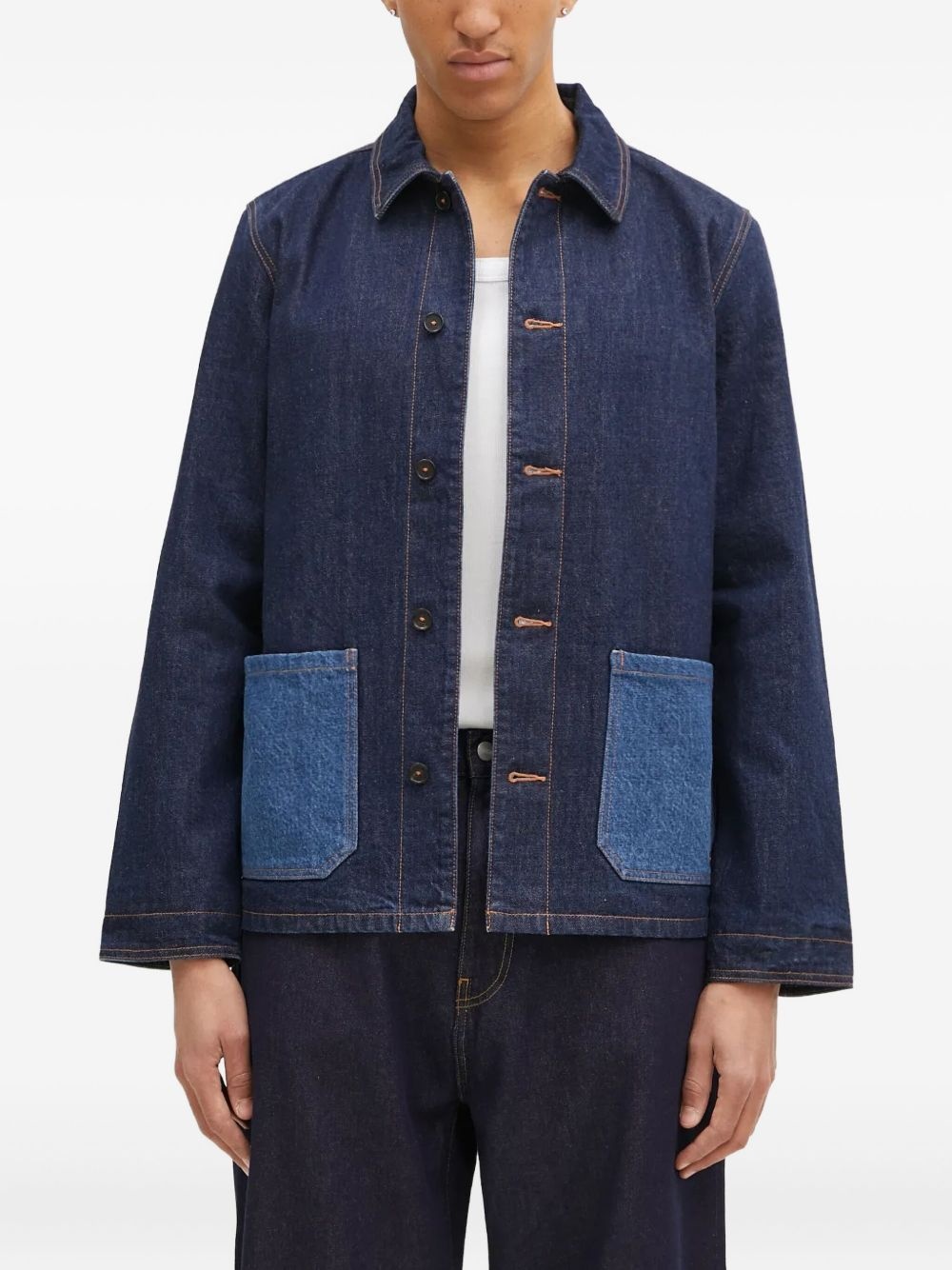 contrast-pocket denim jacket Highlights - Indigo blue - Contrasting patch pockets - Front button fastening - Contrast stitching detail Imported Composition Cotton 100%