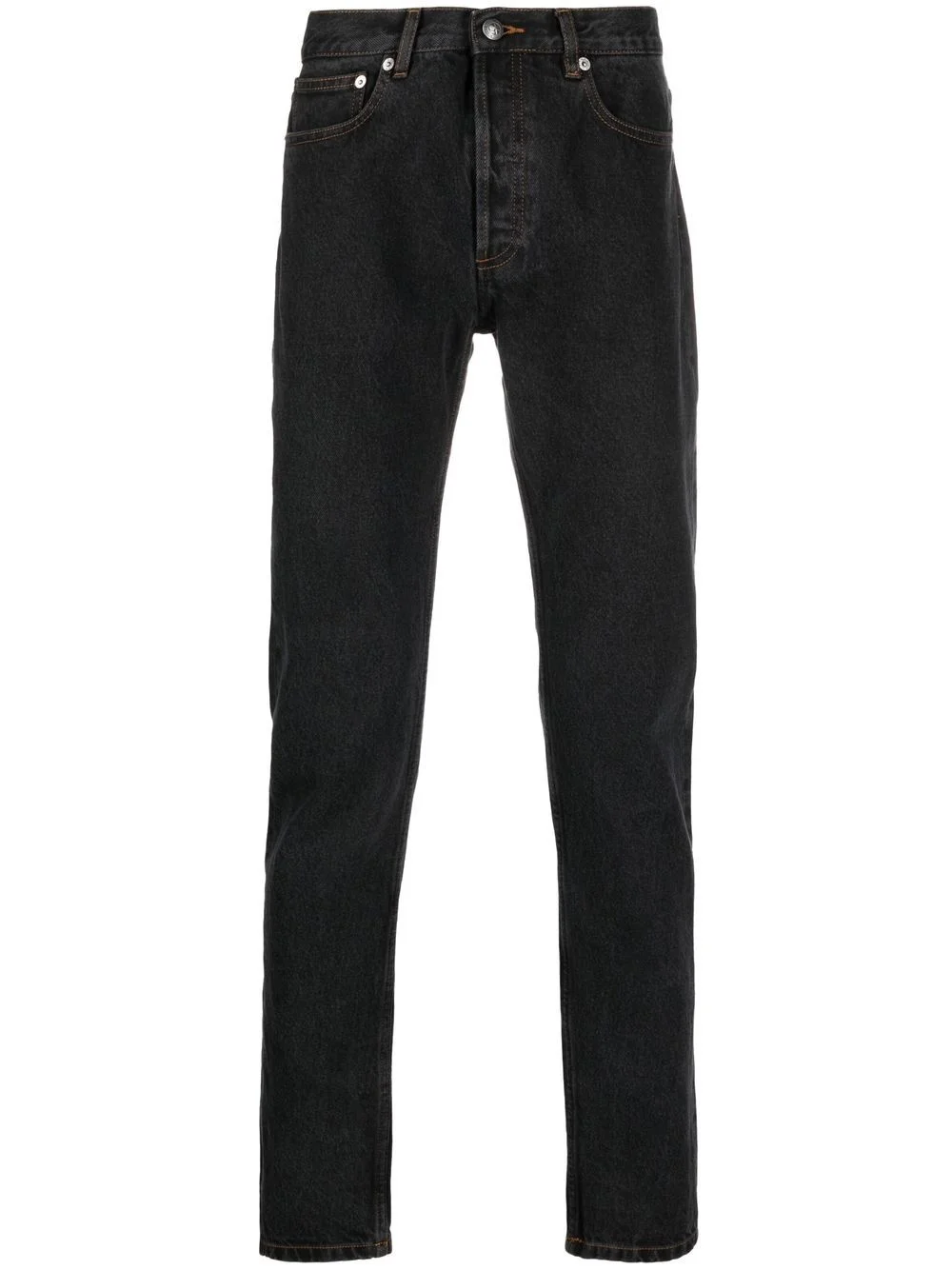 contrast-stitch straight-leg jeans Imagined in black washed denim, these jeans from A.P.C. are constructed in a classic straight leg design with contrasting tobacco brown stitching. Imported Composition Cotton 100% SIZE & FIT Model measurements Height 6 ft 0 in(1.84 m) Bust/Chest 36.22 in(92 cm) Hips 35.43 in(90 cm) Waist 26.77 in(68 cm) FittingInformation This piece fits true to size. We recommend you get your regular size Cut for a slim fit Made with a mid-weight non-stretch fabric Washing instructions Machine Wash