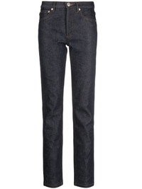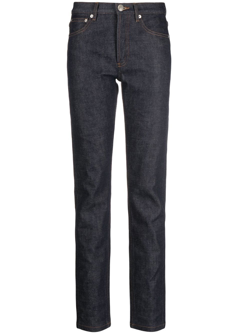 contrasting-stitch detail jeans indigo blue cotton contrast stitching belt loops front button and zip fastening classic five pockets When buying this unisex item, keep in mind that it is graded in standard men's sizing. Imported Composition Cotton 100% SIZE & FIT Model measurements Height 5 ft 10 in(1.78 m) Bust/Chest 33.07 in(84 cm) Hips 35.82 in(91 cm) Waist 25.98 in(66 cm) Measurement FRONT RISE 9.44 in(24 cm) INSIDE LEG 35.03 in(89 cm) Hem Width 14.17 in(36 cm) WAIST 32.28 in(82 cm) FittingInformation This piece fits small – you might want to get one size up Cut for a slim fit Made with a mid-weight non-stretch fabric