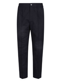 elastic-waist cotton trousers Highlights - Navy blue - Cotton - Elasticated waistline - Side pockets - Button fly Imported Composition Cotton 100% Washing instructions Read Manufacturer Guidelines