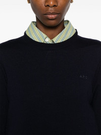 embroidered-logo sweater Highlights - Navy blue - Wool - Fine ribbed - Embroidered logo at the chest - Crew neck - Long sleeves - Straight hem - Unlined Made in Italy Composition Wool 100% SIZE & FIT Model measurements Height 5 ft 10 in(1.78 m) Bust/Chest 31.49 in(80 cm) Hips 37 in(94 cm) Waist 23.62 in(60 cm) FittingInformation Designed for a relaxed fit, this piece allows for comfort and movement when worn The ribbed hem offers a close, comfortable fit Made with a midweight knit, this piece offers some stretch This piece fits true to size – take your usual size