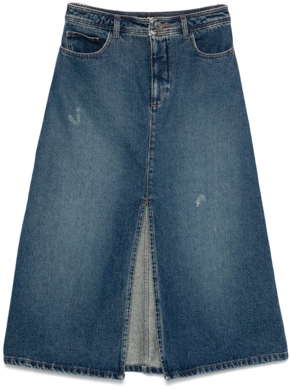 Georgia midi skirt Highlights - Indigo blue - Concealed fly and button fastening - Belt loops - Classic five pockets - Front slit Imported Composition Cotton 100% SIZE & FIT Model measurements Height 5 ft 10 in(1.78 m) Bust/Chest 33.85 in(86 cm) Hips 36.61 in(93 cm) Waist 26.77 in(68 cm) FittingInformation This midi-length skirt is intended to be worn just below the waist Sturdy and hard-wearing, this denim piece offers no stretch