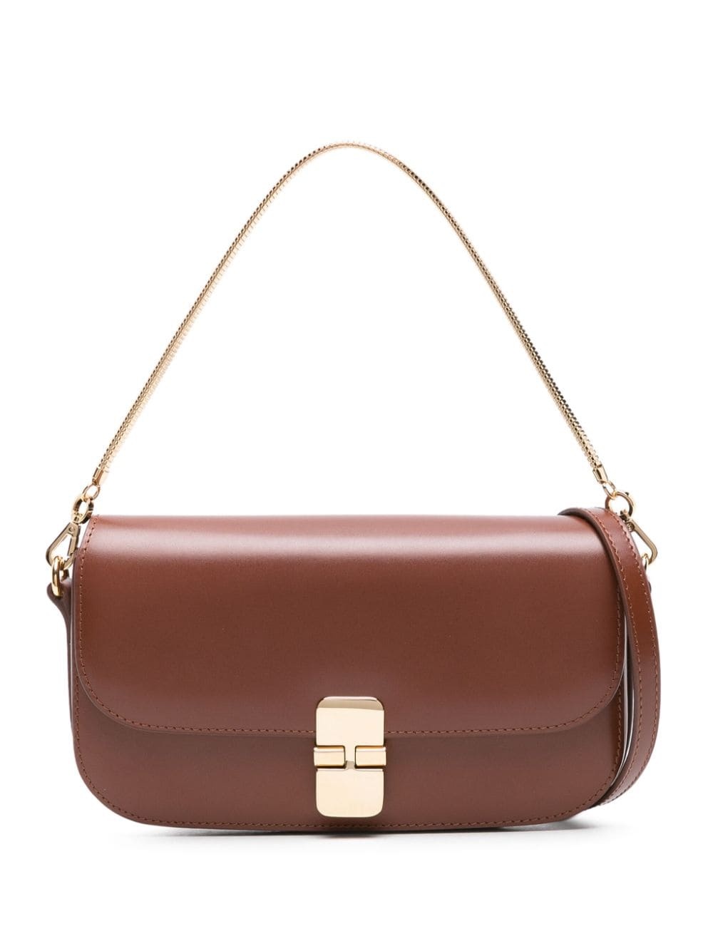Grace Chaine leather clutch bag Highlights - Chocolate brown - Leather - Smooth grain - Logo stamp to the rear - Foldover top with press-stud fastening - Adjustable detachable shoulder strap - Detachable chain-link top handle - Main compartment - Internal note compartments - Internal card slots - Cotton lining - Gold-tone hardware Made in Italy Composition Outer: Leather 100% Lining: Cotton 100% SIZE & FIT Model measurements Height 5 ft 10 in(1.77 m) Bust/Chest 33.07 in(84 cm) Hips 37 in(94 cm) Waist 24.8 in(63 cm) Measurement DEPTH 1.18 in(3 cm) HANDLE 5.11 in(13 cm) HEIGHT 4.33 in(11 cm) STRAP 43.3 in(110 cm) WIDTH 7.87 in(20 cm)