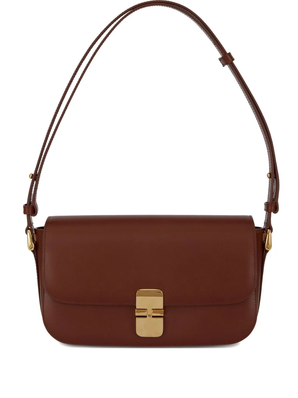 Grace flap shoulder bag Highlights - Brown - Adjustable shoulder strap - Gold-tone hardware - Flap top - Clasp fastening Imported Composition Outer: Calf Leather 100% Lining: Cotton 100% SIZE & FIT Measurement DEPTH 1.96 in(5 cm) HEIGHT 5.9 in(15 cm) WIDTH 9.44 in(24 cm)