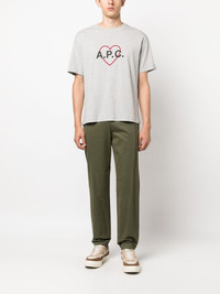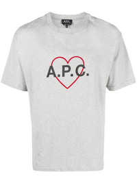 heart logo cotton T-shirt French brand A.P.C. reflects its casual aesthetic with this T-shirt from the AW23 collection. A fine heart motif frames the iconic logo in a continuation of the label's penchant for minimalist branding. Highlights - Light grey - Cotton - Jersey knit - Heart print - Logo print to the front - Crew neck - Drop shoulder - Short sleeves - Straight hem Imported Composition Cotton 100% SIZE & FIT Model measurements Height 6 ft 2 in(1.87 m) Bust/Chest 36.41 in(92.5 cm) Hips 35.43 in(90 cm) Waist 29.52 in(75 cm) Washing instructions Machine Wash