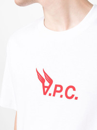 Hermance logo-print cotton T-shirt A.P.C.'s casual style is captured in this cotton T-shirt for the AW23 collection. Rendered in white, it is cut to a relaxed fit and boasts a 'flying A' logo print at the chest, giving the garment a recognisable finish. Highlights - White/red - Cotton - Jersey knit - Logo print at the chest - Crew neck - Short sleeves - Straight hem Imported Composition Cotton 100% SIZE & FIT Model measurements Height 6 ft 2 in(1.87 m) Bust/Chest 35.82 in(91 cm) Hips 35.43 in(90 cm) Waist 27.95 in(71 cm) FittingInformation Designed for a relaxed fit, this piece allows for comfort and movement when worn Made from a midweight non-stretch fabric, this piece offers minimal elasticity when worn This piece fits true to size – take your usual size