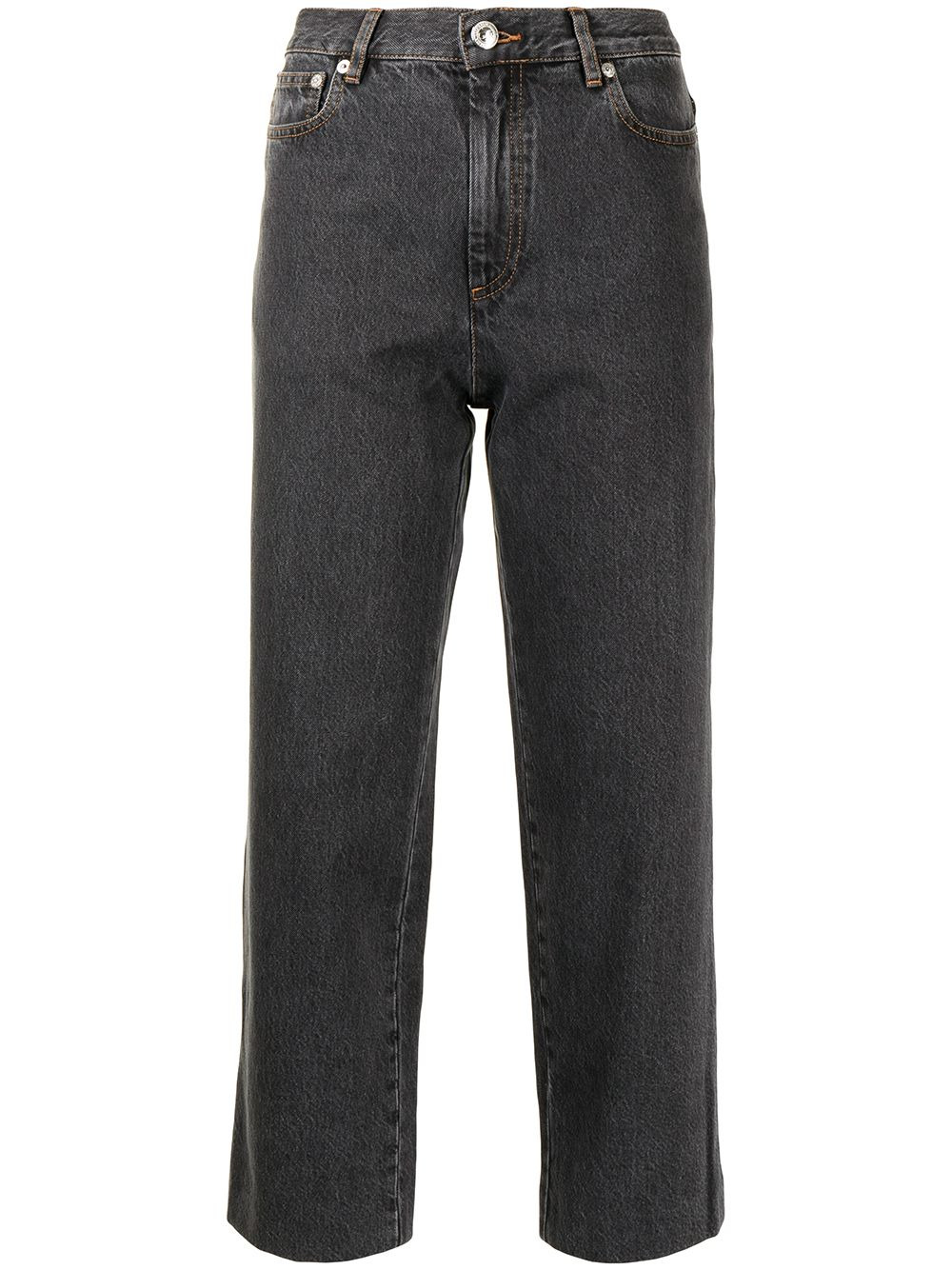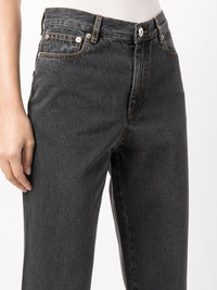 high-rise cropped jeans dark grey cotton dark wash high waist cropped leg front button fastening classic five pockets Imported Composition Cotton 100% SIZE & FIT Model measurements Height 5 ft 9 in(1.76 m) Bust/Chest 29.13 in(74 cm) Hips 33.07 in(84 cm) Waist 22.83 in(58 cm) FittingInformation This piece fits true to size. We recommend you get your regular size Designed to be fitted at the waist, loose over the leg Made with a mid-weight fabric Washing instructions Machine Wash