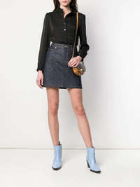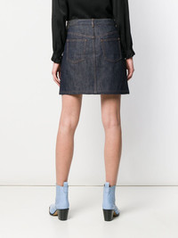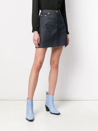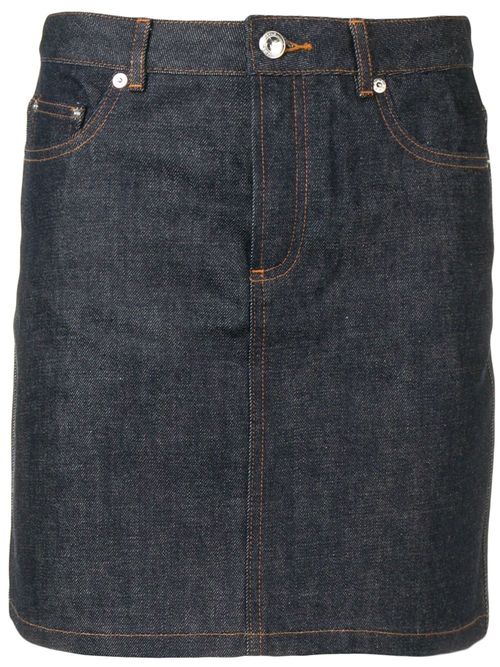 high waisted skirt Indigo blue cotton high waisted skirt from A.P.C. featuring a fitted waist, back pockets, belt loops and a button and zip fly. Made in Italy Composition Cotton 100% SIZE & FIT Model measurements Height 5 ft 11 in(1.8 m) Bust/Chest 31.88 in(81 cm) Hips 35.03 in(89 cm) Waist 24.01 in(61 cm) Washing instructions Machine Wash