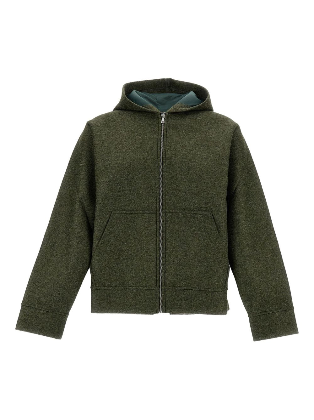 hooded zip-front jacket Highlights - Dark green - Front pocket - Zip closure - Hooded neckline - Long sleeves Imported Composition Polyester 50%, Acrylic 35%, Wool 15%