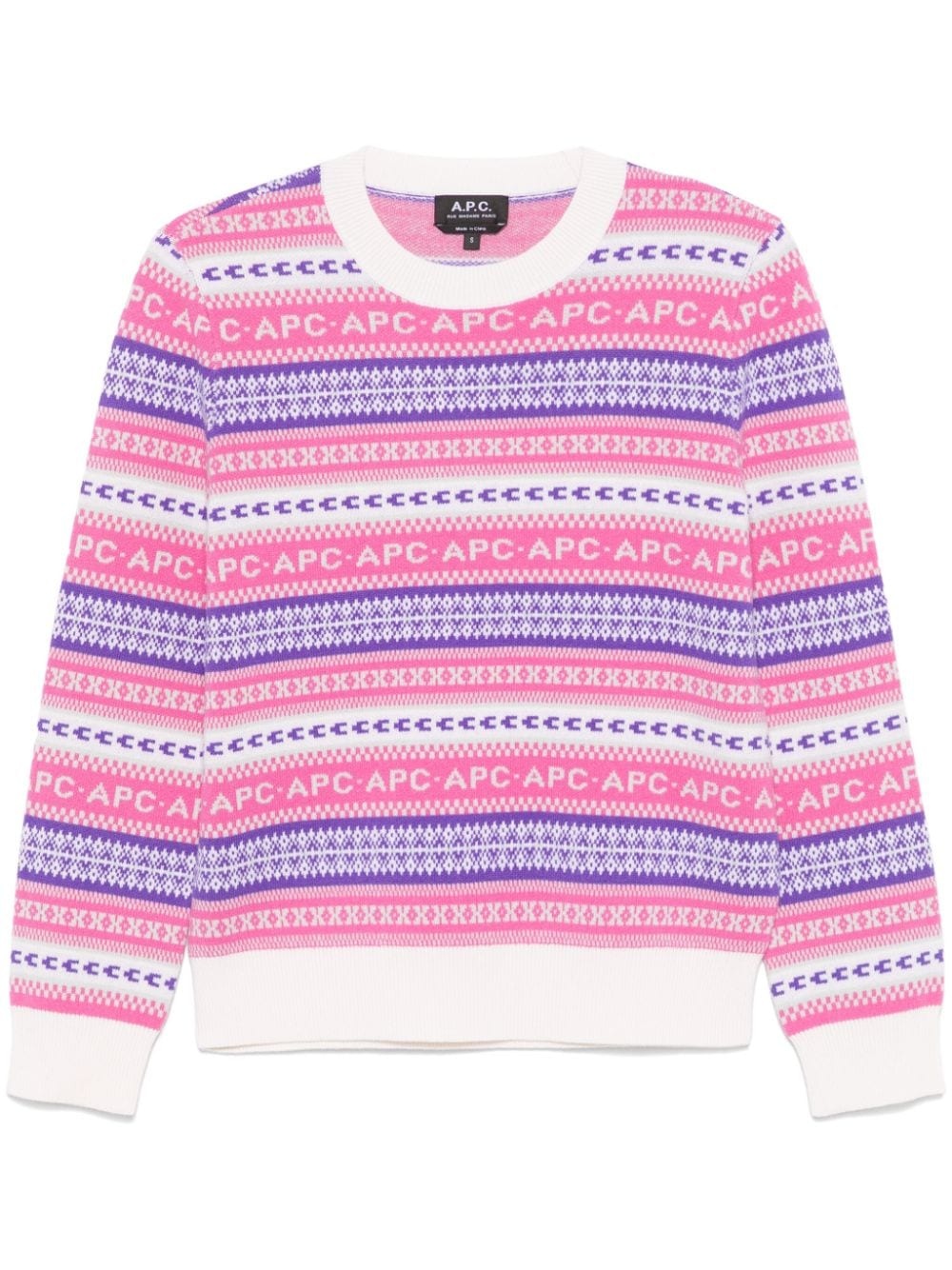 jacquard sweater Highlights - Rose pink/multicolour - Virgin wool - Fair-isle patterned jacquard - Horizontal stripe pattern - Logo embellishment - Crew neck - Long sleeves - Ribbed cuffs and hem - Straight hem Imported Composition Virgin Wool 100% SIZE & FIT Model measurements Height 5 ft 10 in(1.77 m) Bust/Chest 33.07 in(84 cm) Hips 37 in(94 cm) Waist 24.8 in(63 cm) FittingInformation Designed for a relaxed fit, this piece allows for comfort and movement when worn Made with a midweight knit, this piece offers some stretch Washing instructions Hand Wash