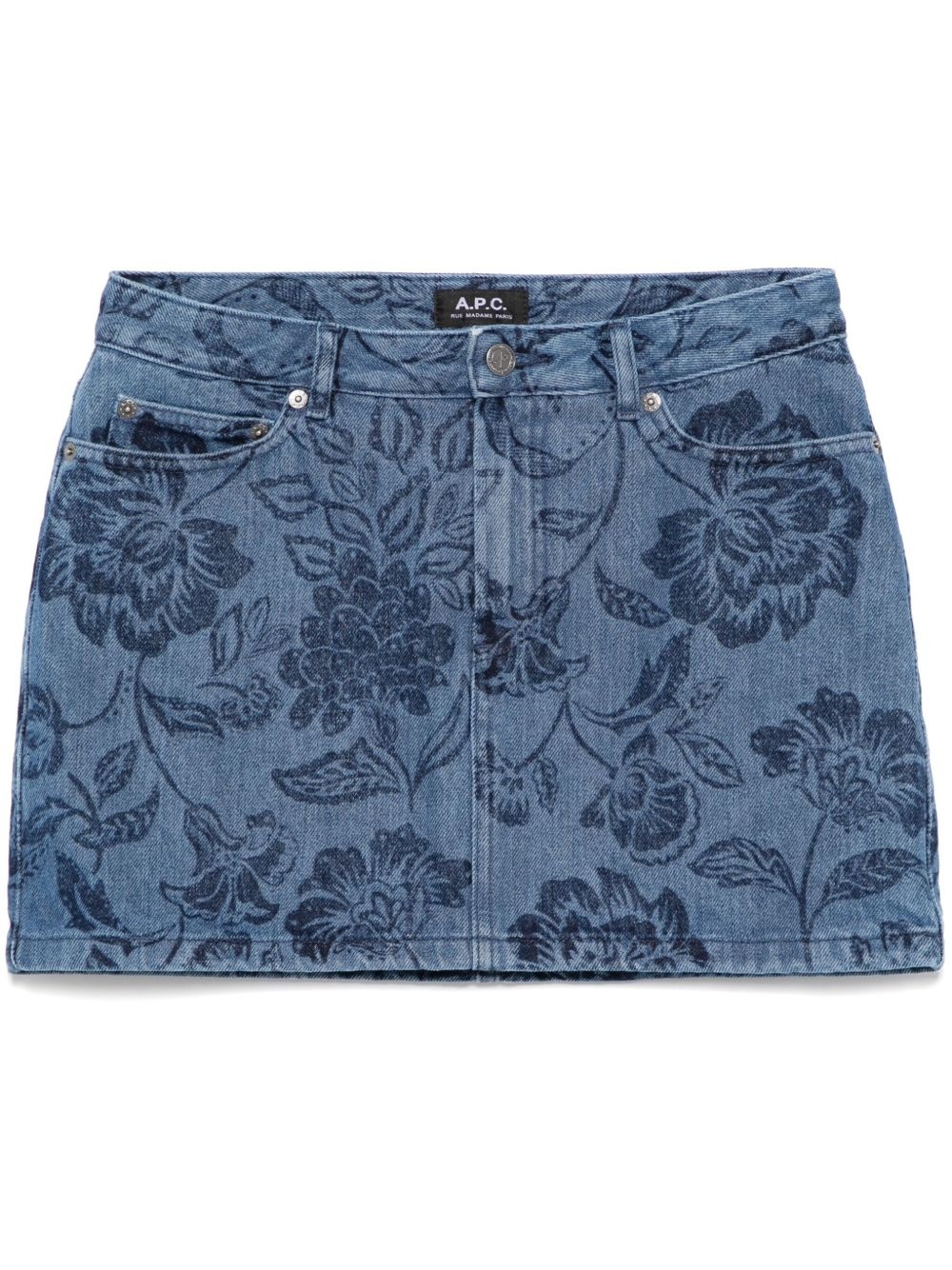 Jupe mini skirt Highlights - Indigo blue - Concealed fly and button fastening - Belt loops - Classic five pockets - All-over floral print Imported Composition Cotton 100%