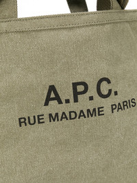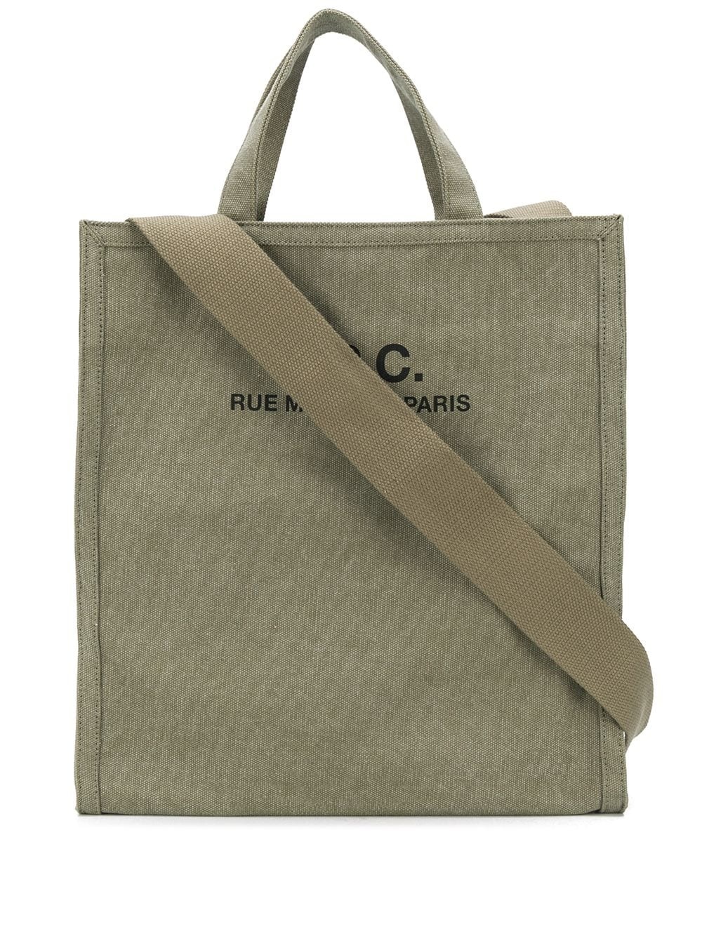 logo cotton tote bag Olive green logo cotton tote bag from A.P.C. featuring top handles, an open top design, a main internal compartment, a printed logo to the front and an adjustable shoulder strap. Imported Composition Cotton 100% SIZE & FIT Model measurements Height 5 ft 11 in(1.8 m) Bust/Chest 33.07 in(84 cm) Hips 37.4 in(95 cm) Waist 25.19 in(64 cm) Measurement DEPTH 4.33 in(11 cm) HANDLE 5.11 in(13 cm) HEIGHT 15.35 in(39 cm) STRAP 27.55 in(70 cm) WIDTH 13.38 in(34 cm)