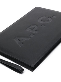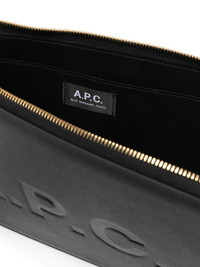 logo-debossed leather clutch bag