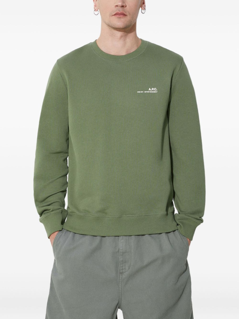 logo-embroidered crew-neck sweatshirt Highlights - Green - Crew neck - Long sleeves - Ribbed cuffs - Ribbed hem - Small logo embroidery Imported Composition Organic Cotton 100% Washing instructions Machine Wash
