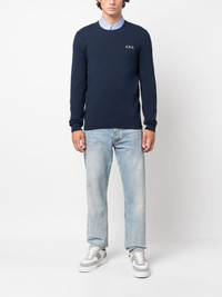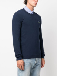 Alois logo-embroidered fine-knit jumper Championing a minimalist design approach that focuses on quality and timelessness, A.P.C. presents this navy-blue jumper. Finely knit from cotton yarn, it is cut to a simple silhouette that is pared back, save for the brand's embroidered logo at the chest. Highlights - Navy blue - Cotton - Fine knit - Embroidered logo at the chest - Ribbed trim - Crew neck - Long sleeves - Straight hem Imported Composition Cotton 100% SIZE & FIT Model measurements Height 6 ft 2 in(1.88 m) Bust/Chest 37.79 in(96 cm) Hips 35.82 in(91 cm) Waist 29.92 in(76 cm) FittingInformation Designed for a slim fit, offering a comfortable fit that sits just away from the body Made with a midweight knit, this piece offers some stretch This piece fits true to size – take your usual size Washing instructions Hand Wash