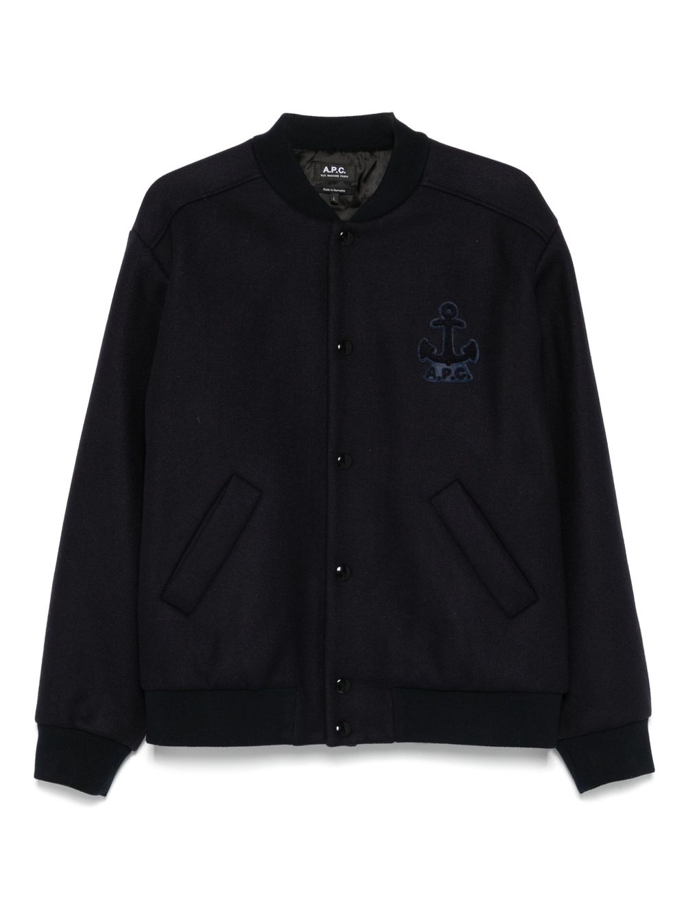 logo-embroidered jacket Highlights - Navy blue - Front press-stud fastening - Two side welt pockets - Baseball collar - Long sleeves Imported Composition Outer: Wool 75%, Polyamide 25% Lining: Polyester 100%, Viscose 100% SIZE & FIT Model measurements Height 6 ft 0 in(1.84 m) Bust/Chest 35.82 in(91 cm) Hips 37 in(94 cm) Waist 28.34 in(72 cm) FittingInformation Designed to be unstructured, offering a loose fit throughout The ribbed hem offers a close, comfortable fit Made from a midweight non-stretch fabric