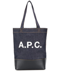 logo print denim tote Dark blue cotton logo print denim tote from A.P.C. featuring top handles, an internal zipped pocket, an open top design, a printed logo and leather trimming. Imported Composition Outer: Cotton 100% SIZE & FIT Model measurements Height 6 ft 1 in(1.85 m) Bust/Chest 37.79 in(96 cm) Hips 37.4 in(95 cm) Waist 30.7 in(78 cm) Measurement DEPTH 5.51 in(14 cm) HANDLE 10.62 in(27 cm) HEIGHT 15.74 in(40 cm) WIDTH 11.81 in(30 cm)