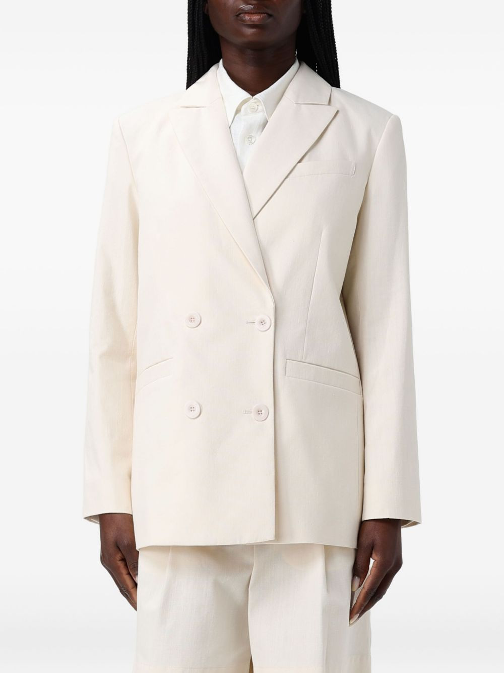 Lucy double-breasted blazer Highlights - White - Double breasted - Button fastening - Peak lapels - Long sleeves Imported Composition Cotton 100% SIZE & FIT FittingInformation Designed for a relaxed fit, this piece allows for comfort and movement when worn The internal shoulder pads offer a structured shape Made from a midweight non-stretch fabric Washing instructions Dry Clean Only