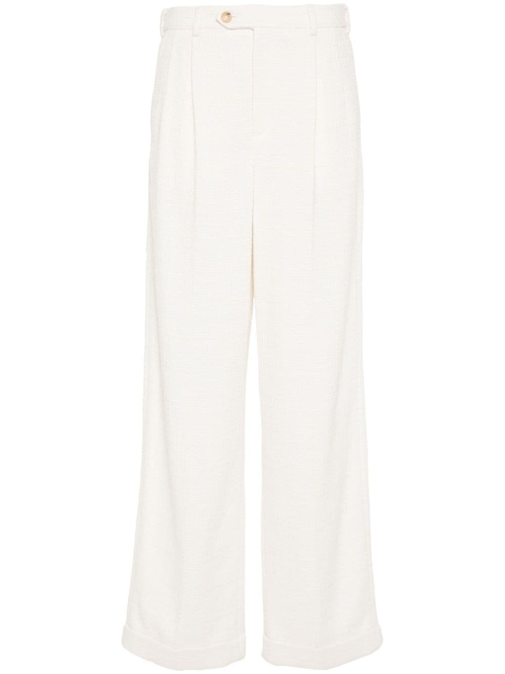 Melissa trousers Highlights - Ecru - Cotton blend - Tweed - Pleat detailing - Belt loops - Front button and zip fastening - Straight leg - Two side slit pockets - Two rear welt pockets - Turn-up cuffs Imported Composition Outer: Cotton 68%, Polyester 29%, Other fibres 5% Lining: Viscose 100% SIZE & FIT Model measurements Height 5 ft 10 in(1.78 m) Bust/Chest 33.07 in(84 cm) Hips 36.61 in(93 cm) Waist 24.8 in(63 cm) FittingInformation Designed for a straight-leg fit, these trousers allow for a close fit at the waist and an unrestricted, comfortable fit over the leg Made from a midweight non-stretch fabric This piece fits true to size – take your usual size