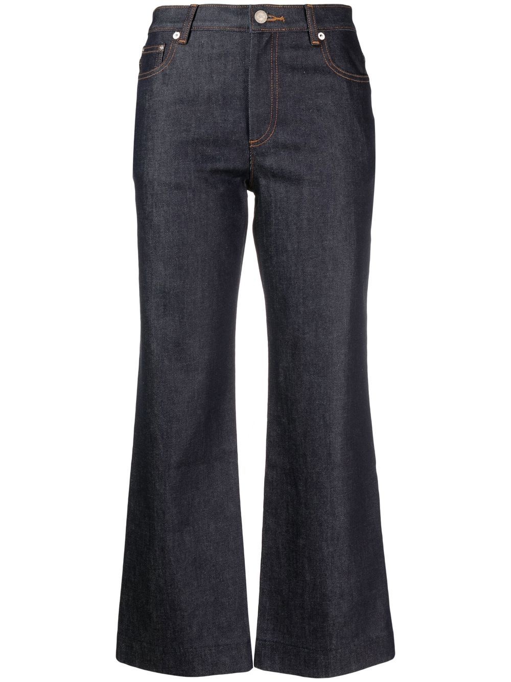 mid-rise cropped jeans indigo blue cotton blend mid-rise belt loops front button and zip fastening straight leg cropped leg classic five pockets Imported Composition Cotton 98%, Polyurethane 2% SIZE & FIT Model measurements Height 5 ft 11 in(1.8 m) Bust/Chest 33.07 in(84 cm) Hips 37.4 in(95 cm) Waist 25.19 in(64 cm) FittingInformation This piece fits true to size. We recommend you get your regular size Designed to be fitted at the waist and through the thigh, loose from the knee Made with a mid-weight non-stretch fabric