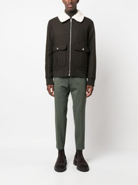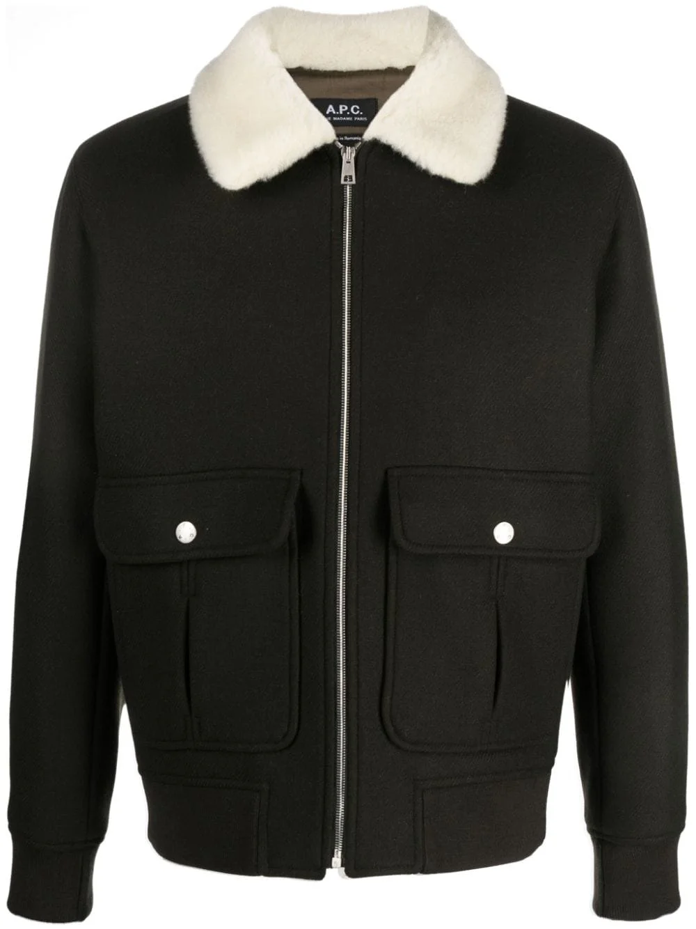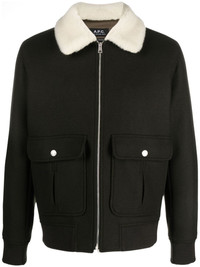 New Ben flight jacket Crafted from a wool blend, A.P.C.'s New Ben jacket is cut to a streamlined silhouette inspired by flight jackets, as shown through the faux-fur collar and ribbing at the cuffs and hem. Highlights - Dark green/white - Wool blend - Contrasting collar - Front zip fastening - Long sleeves - Two front flap pockets - Ribbed cuffs and hem Imported Composition Outer: Wool 85%, Virgin Wool 75%, Polyamide 25%, Cotton 15% Lining: Viscose 100%, Polyester 100% SIZE & FIT Model measurements Height 6 ft 0 in(1.84 m) Bust/Chest 36.22 in(92 cm) Hips 35.43 in(90 cm) Waist 26.77 in(68 cm) FittingInformation Designed for a regular fit, allowing for a comfortably loose fit throughout the body The ribbed hem offers a close, comfortable fit Made from a midweight non-stretch fabric This piece fits true to size – take your usual size Washing instructions Dry Clean Only