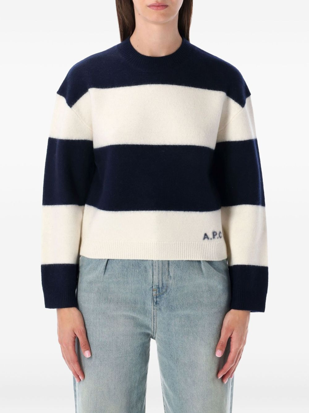 Penny stripe knit sweater Highlights - Navy white - Horizontal stripes - Crew neck - Long sleeves - Embroidered logo Imported Composition Virgin Wool 100% Washing instructions Read Manufacturer Guidelines