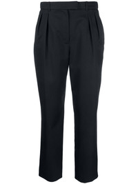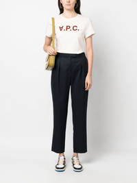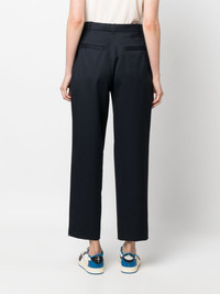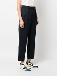 pleated cropped trousers A.P.C stands for Atelier de Production et de Creation, a brand known for creating casual and timeless styles. These pleated cropped trousers feature a navy blue wool construction with a relaxed cut. Highlights - Navy blue - Wool - Pleat detailing - High-waisted - Concealed front fastening - Two side inset pockets - Two rear welt pockets - Cropped leg Imported Composition Wool 100% SIZE & FIT Model measurements Height 5 ft 10 in(1.78 m) Bust/Chest 31.49 in(80 cm) Hips 36.22 in(92 cm) Waist 25.59 in(65 cm) FittingInformation Designed for a tapered fit, these trousers allow for a close fit at the waist and a loose unrestricted fit over the leg with a closer fit towards the ankle Made from a midweight non-stretch fabric This piece fits true to size – take your usual size Washing instructions Dry Clean Only