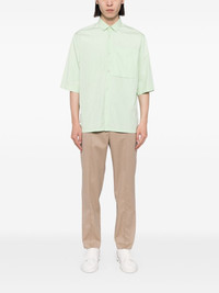 pressed-crease straight trousers Highlights - Beige - Organic cotton-wool blend - Pressed crease - Rear elasticated waistband - Button fly fastening - Straight leg - Two side inset pockets - Rear jetted pocket Imported Composition Lambs Wool 60%, Organic Cotton 40% SIZE & FIT Model measurements Height 6 ft 2 in(1.87 m) Bust/Chest 33.07 in(84 cm) Hips 35.43 in(90 cm) Waist 26.77 in(68 cm) FittingInformation Designed for a tapered leg, offering a loose unrestricted fit over the leg with a closer fit towards the ankle The elasticated waist allows for a comfortable fit Made from a midweight non-stretch fabric This piece fits true to size – take your usual size