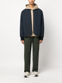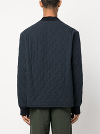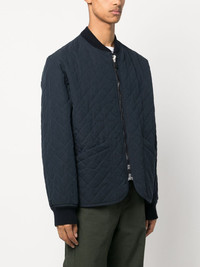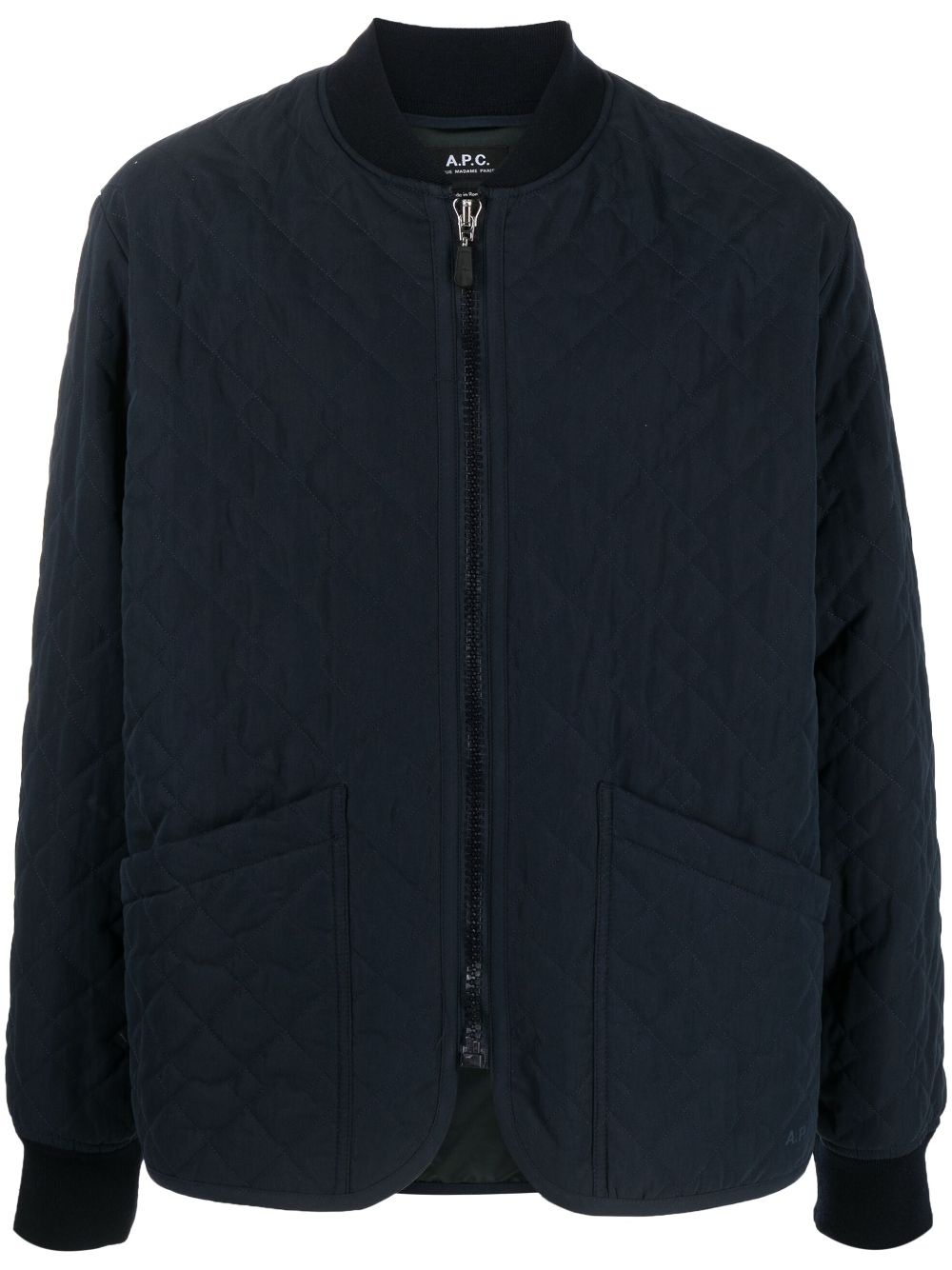 quilted bomber jacket Guided by a minimalist aesthetic, A.P.C. elevates its designs with signature details, as demonstrated by this bomber jacket. The quilted virgin wool and cotton construction is accented with a logo print to the hem. Highlights - Navy blue - Virgin wool-cotton blend - Quilted finish - Band collar - Ribbed trim - Front zip fastening - Long sleeves - Two side slit pockets - Logo print at the hem - Straight hem Imported Composition Outer: Cotton 75%, Acrylic 47%, Virgin Wool 47%, Polyamide 25%, Elastane 6% Lining: Polyester 100% SIZE & FIT Model measurements Height 6 ft 2 in(1.87 m) Bust/Chest 38.18 in(97 cm) Hips 36.61 in(93 cm) Waist 29.13 in(74 cm) FittingInformation Designed to be unstructured, offering a loose fit throughout Made from a quilted non-stretch fabric, giving it no natural elasticity This piece fits true to size – take your usual size Washing instructions Dry Clean Only