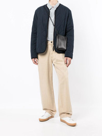 quilted front-zip jacket navy blue cotton blend quilted finish front zip fastening long sleeves curved hem Imported Composition Cotton 75%, Polyamide 25% SIZE & FIT Model measurements Height 6 ft 0 in(1.83 m) Bust/Chest 37.79 in(96 cm) Hips 37 in(94 cm) Waist 30.31 in(77 cm) FittingInformation This piece fits true to size. We recommend you get your regular size Cut for a loose fit Made with a mid-weight fabric Washing instructions Dry Clean Only