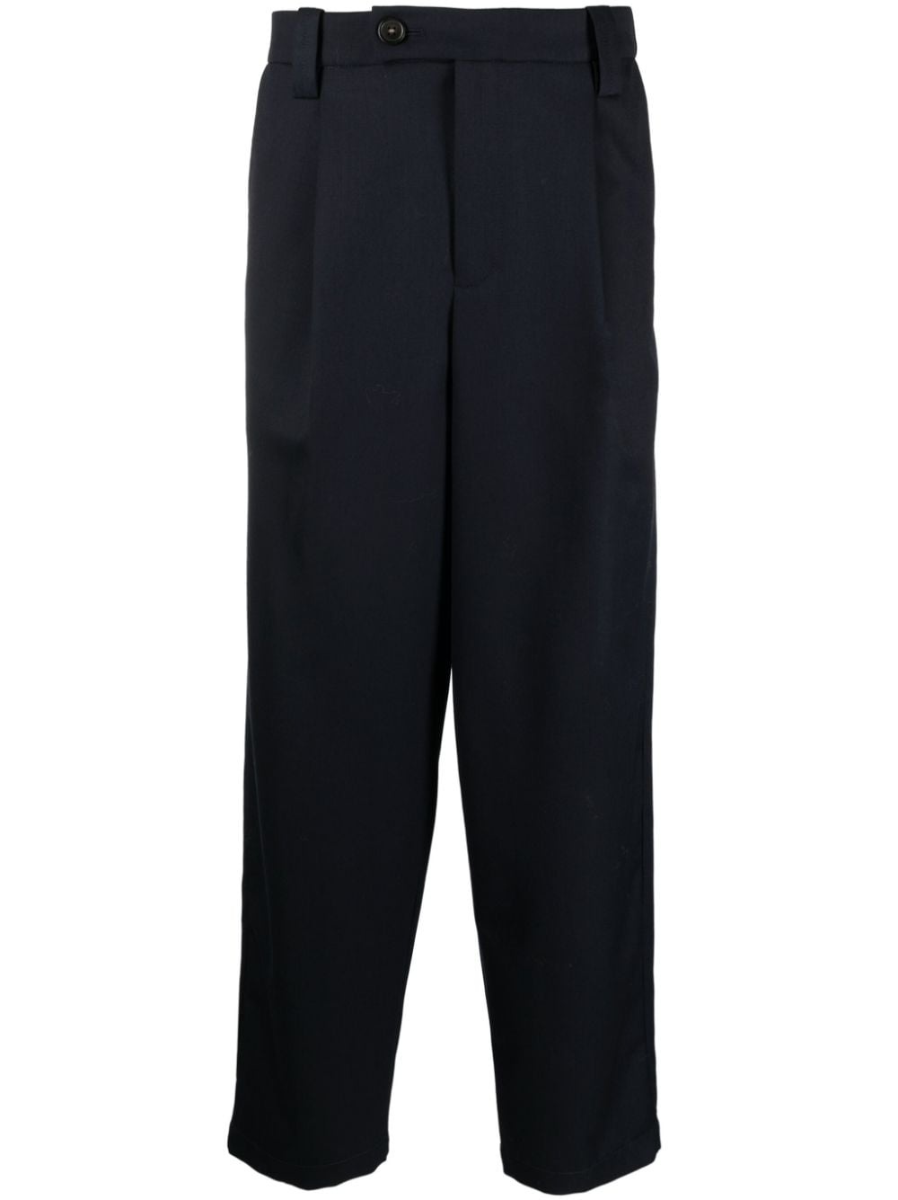 Renato pleated wool trousers Standing for Atelier de Production et de Creation, A.P.C. positions itself as a ready-to-wear brand that creates high-end basics. The brand's focus is on function and quality, to embody a casual elegance. That is translated into the Renato wool trousers, which is are cut to a cropped silhouette and enhanced with pleat detailing to the front. Highlights - Midnight blue - Wool - Off-centre front button fastening - Belt loops - Pleat detailing - Two side slit pockets - Rear flap pocket - Straight leg - Cropped Imported Composition Wool 100% SIZE & FIT Model measurements Height 6 ft 2 in(1.87 m) Bust/Chest 36.41 in(92.5 cm) Hips 37 in(94 cm) Waist 29.52 in(75 cm) FittingInformation Designed for a tapered leg, offering a loose unrestricted fit over the leg with a closer fit towards the ankle Made from a midweight non-stretch fabric, this piece offers minimal elasticity when worn This piece fits true to size – take your usual size Washing instructions Dry Clean Only