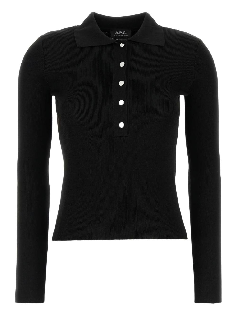 ribbed-knit polo shirt Highlights - Black - Ribbed texture - Long sleeves - Polo collar - Button fastening Imported Composition Viscose 52%, Polyester 48% Washing instructions Read Manufacturer Guidelines
