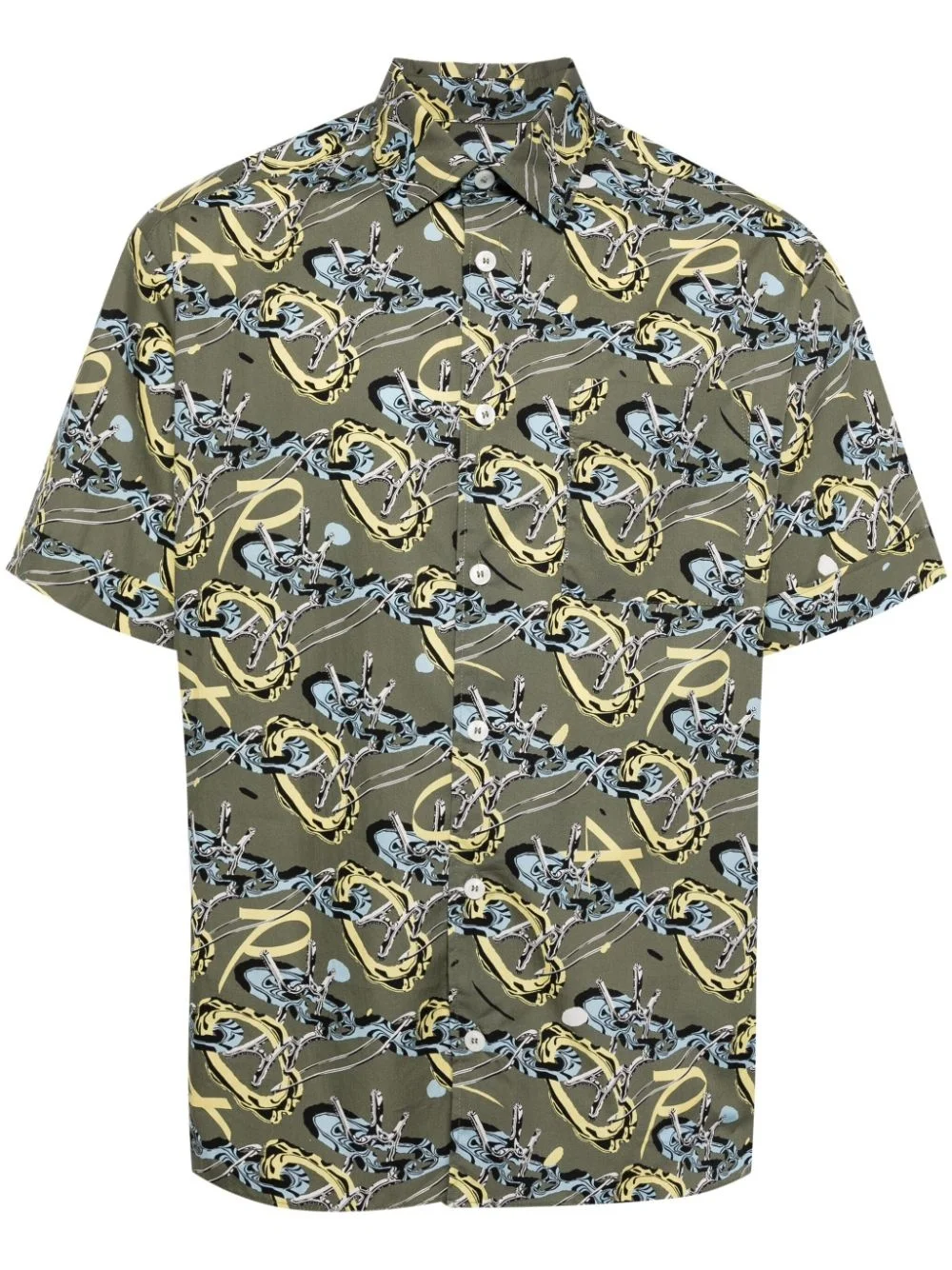 Ross graphic-print cotton shirt Highlights - Khaki/multicolour - Cotton - Poplin texture - All-over graphic print - Straight-point collar - Front button fastening - Short sleeves - Straight hem Imported Composition Cotton 100% Washing instructions Machine Wash