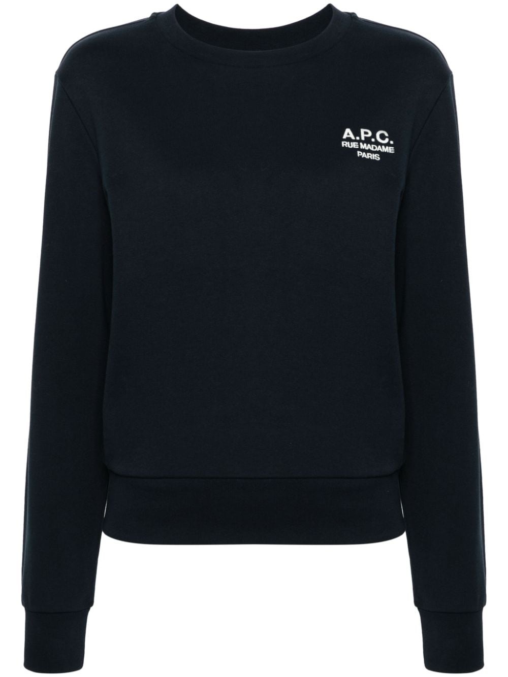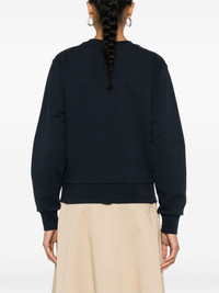 'Boxy Rue Madame' sweatshirt Highlights - Navy blue - Organic cotton - Jersey texture - Crew neck - Embroidered logo at the chest - Long sleeves - Ribbed cuffs and hem - French terry lining Imported Composition Organic Cotton 100% SIZE & FIT Model measurements Height 5 ft 10 in(1.78 m) Bust/Chest 33.07 in(84 cm) Hips 36.61 in(93 cm) Waist 24.8 in(63 cm) FittingInformation Designed for a relaxed fit, this piece allows for comfort and movement when worn Made from a midweight non-stretch fabric, this piece offers minimal elasticity when worn This piece fits true to size – take your usual size