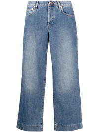 Sailor cropped jeans A.P.C's Sailor jeans present a traditional washed indigo blue finish, cut to a contemporary cropped length. Highlights - Indigo blue - Cotton blend - Washed denim - Mid-rise - Belt loops - Front button and zip fastening - Classic five pockets - Straight leg - Cropped Imported Composition Cotton 98%, Polyurethane 2% SIZE & FIT Model measurements Height 5 ft 10 in(1.78 m) Bust/Chest 29.13 in(74 cm) Hips 35.43 in(90 cm) Waist 23.62 in(60 cm) FittingInformation Designed for a straight-leg fit, these jeans allow for a close fit at the waist and an unrestricted and comfortable fit over the leg Cropped in length Constructed from stretch denim, this piece offers a stretch fit with durability This piece fits small – take one size up Washing instructions Machine Wash