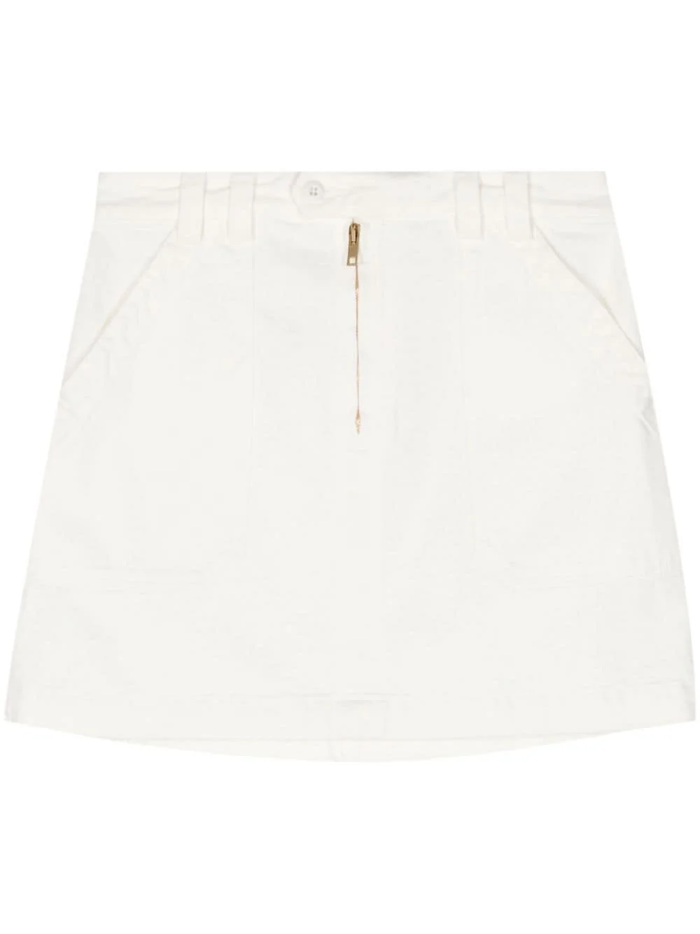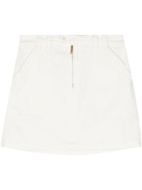 Sarah denim mini skirt Highlights - White - Cotton - Denim - Dart detailing - Gold-tone hardware - Two front patch pockets - Rear zip-fastening pocket - Thigh-length - Straight hem - Unlined - Belt loops - Zip fly fastening - Off-centre front button fastening Imported Composition Cotton 100% Washing instructions Machine Wash