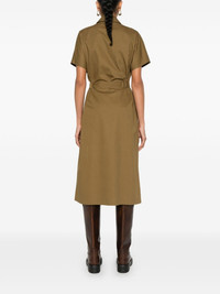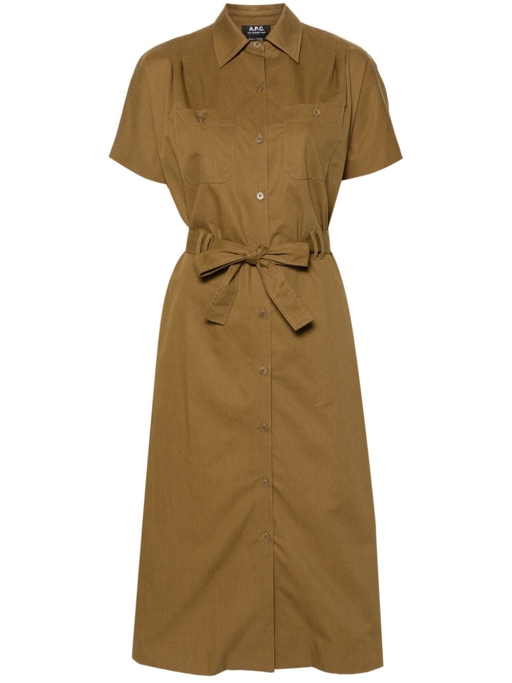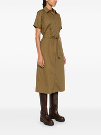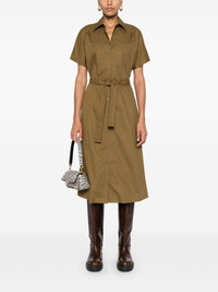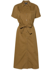 shirt midi dress Highlights - Khaki - Cotton - Twill weave - A-line - Classic collar - Short sleeves - Belt loops - Detachable and adjustable waist belt - Two chest patch pockets - Straight hem - Mid-length - Front button placket Imported Composition Cotton 100% SIZE & FIT Model measurements Height 5 ft 10 in(1.78 m) Bust/Chest 33.07 in(84 cm) Hips 36.61 in(93 cm) Waist 24.8 in(63 cm) FittingInformation Designed for a relaxed fit, this piece allows for comfort and movement when worn The adjustable tie waist gives a more adaptable and personalised fit Made from a midweight non-stretch fabric This piece fits true to size – take your usual size Washing instructions Machine Wash